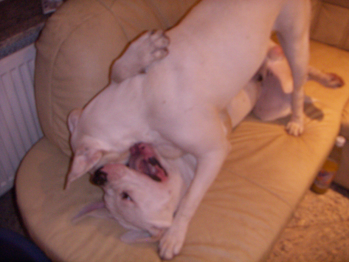 American-Bulldog-Hündin Saar Bulls "Abby" Geboren am 22.01.2006 AB1815Vater:Swiss Bulls DiaboloHD-Awhite,redAB 021110Mutter:Hot Blooded HornetHD-CNCL freiwhiteAB 0339